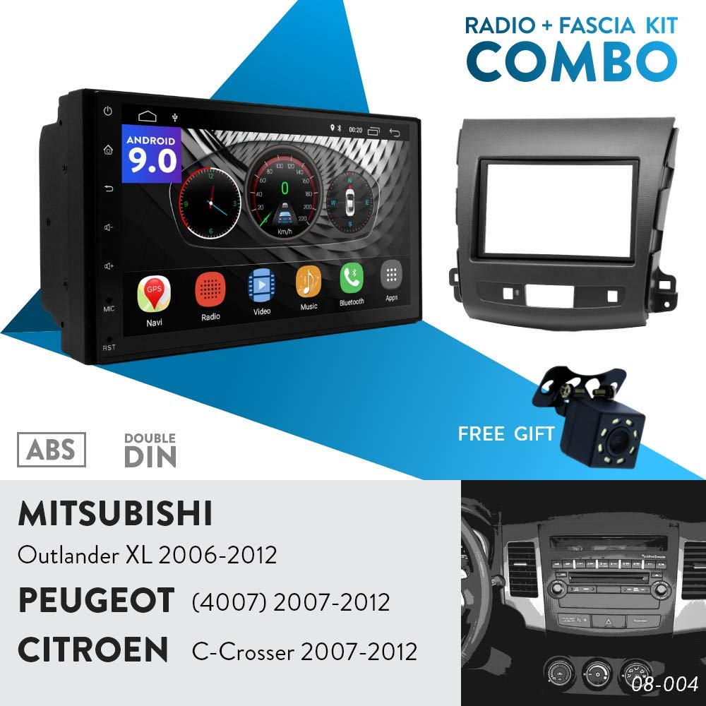 UGAR EX9 7" Android 9.0 DSP Autoradio GPS Navigateur Stéréo De Voiture + 08-004 Kit de Fascia pour Mitsubishi Outlander XL 2006-2012 / Citroen C-Crosser 2007-2012 / Peugeot (4007) 2007-2012